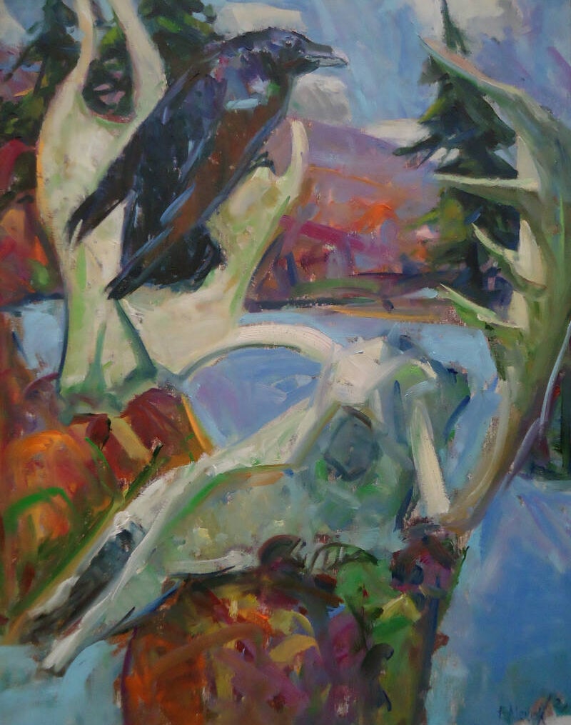 Met mijn fascinatie voor de noordelijke natuur en de dieren die er leven voel ik me soms een buitenbeentje onder de schilders. Je vind hier geen beren en elanden of een groep kariboes zomaar midden op de weg, zoals je Noorwegen en Zweden kunt zien. Veel schilders sluiten in hun werk aan op de directe leefomgeving of de cultuur van het eigen land. Dat maakt dat ik soms twijfel of ik wel door moet gaan met onderwerpen die voor veel mensen niet bepaald tot hun dagelijkse ervaring behoren. Maar telkens weer geeft zo’n overweging niet de doorslag. Dicht bij jezelf blijven is eerste noodzaak in de kunst. Toen Anke aangaf het mooi te vinden was ik heel blij en dus grijp ik de gelegenheid aan een paar van deze schilderijen in haar galerie te laten zien. https://evertmeilink.nl/evert/