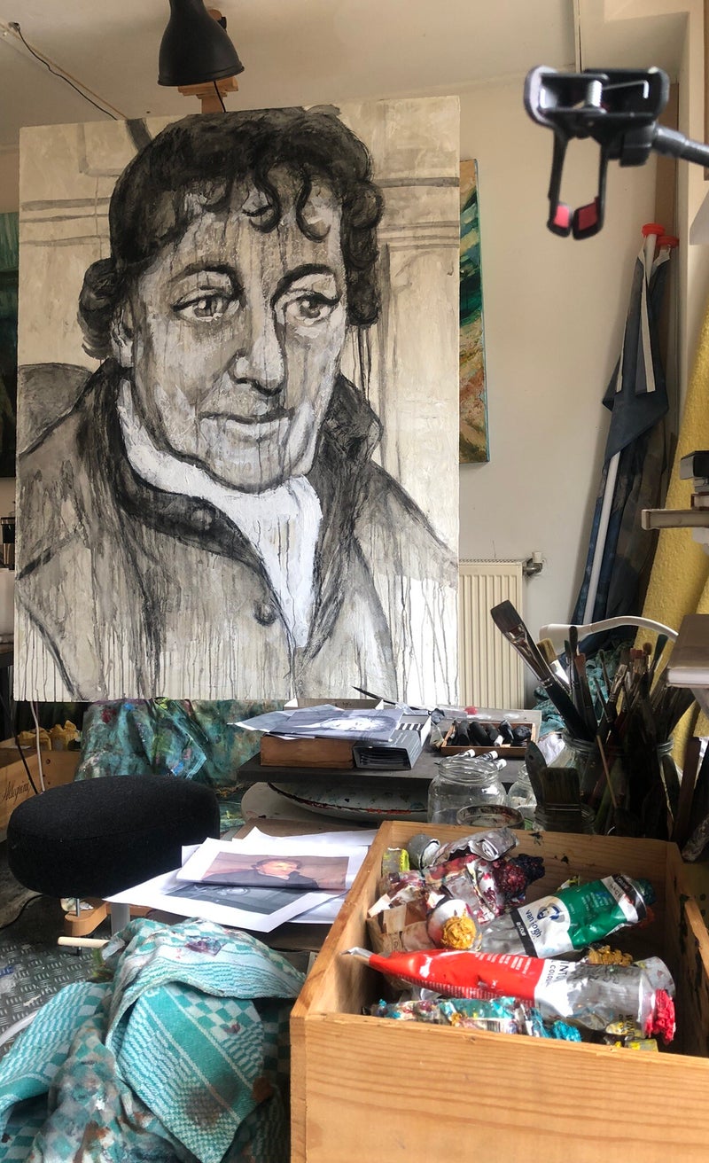 Wat u hier ziet is mijn vertaling van het portret van Eise Eisinga welke bekend staat om het planetarium te Franeker. Dit museum is in september 2023 uitgeroepen tot UNESCO "werelderfgoed" https://www.eisinga-planetarium.nl/ . Ik zal u in het kort uitleggen hoe dit portret tot stand is gekomen, ik heb gekozen voor pure materialen zoals houtskool en gesso, hiermee heb ik in veel lagen gewerkt waardoor het portret na iedere laag steeds meer gaat leven. Voor mij een prachtige ontdekkingstocht waarbij ik tevreden ben met het eindresultaat omdat Ik Eise voor mijn gevoel in zijn emotie geraakt heb. Een heerlijk proces waar ik met veel plezier op terug kijk. Hieronder vindt u diverse beelden van het ontstaansproces van dit portret. Heeft u vragen of interesse in dit portret of wilt u meer van mijn werk zien loop dan gerust even binnen in mijn atelier-galerie verderop in de dijkstraat 50 ik geef u graag meer toelichting. Hier geef ik tevens portretlessen en workshop.