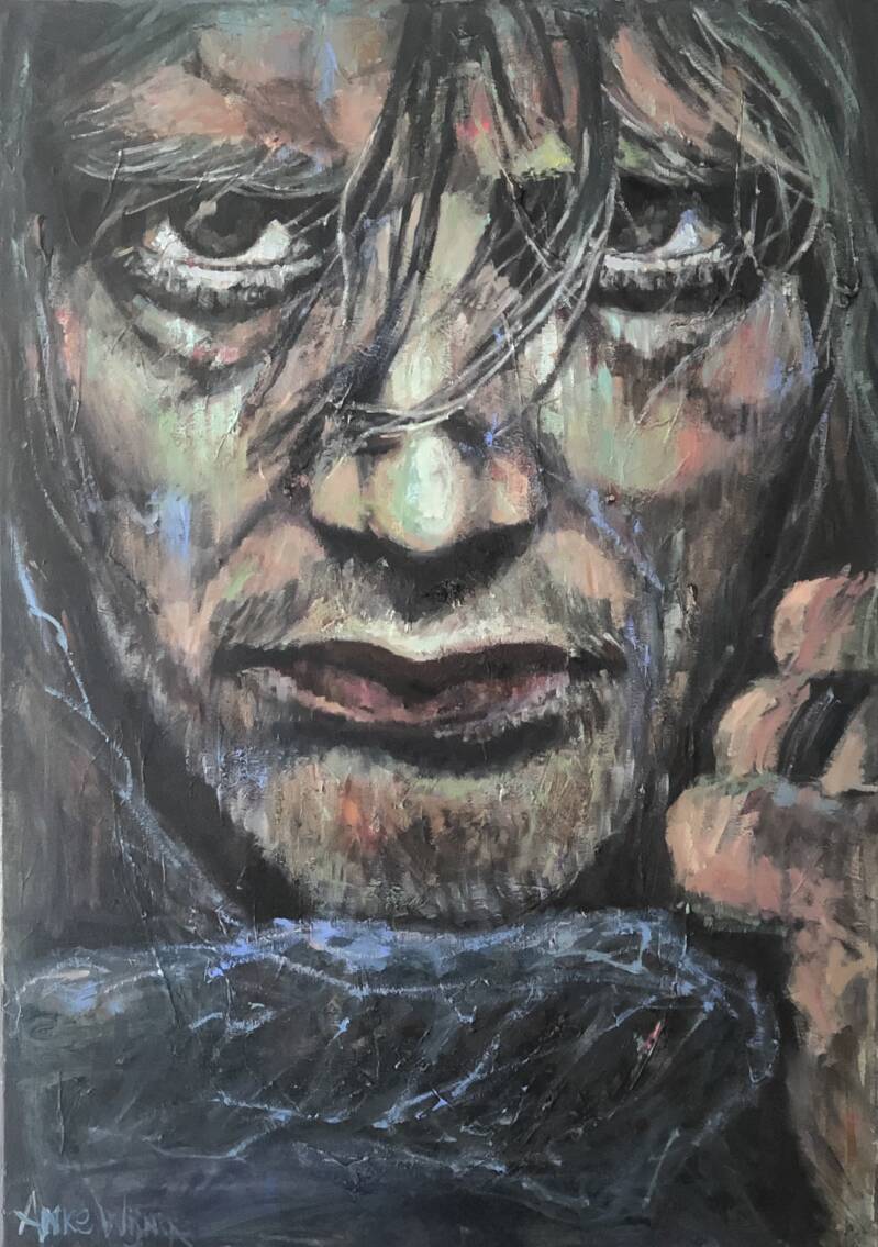 Mads Mikkelsen, olieverf op linnen doek. afm. 70 x 100