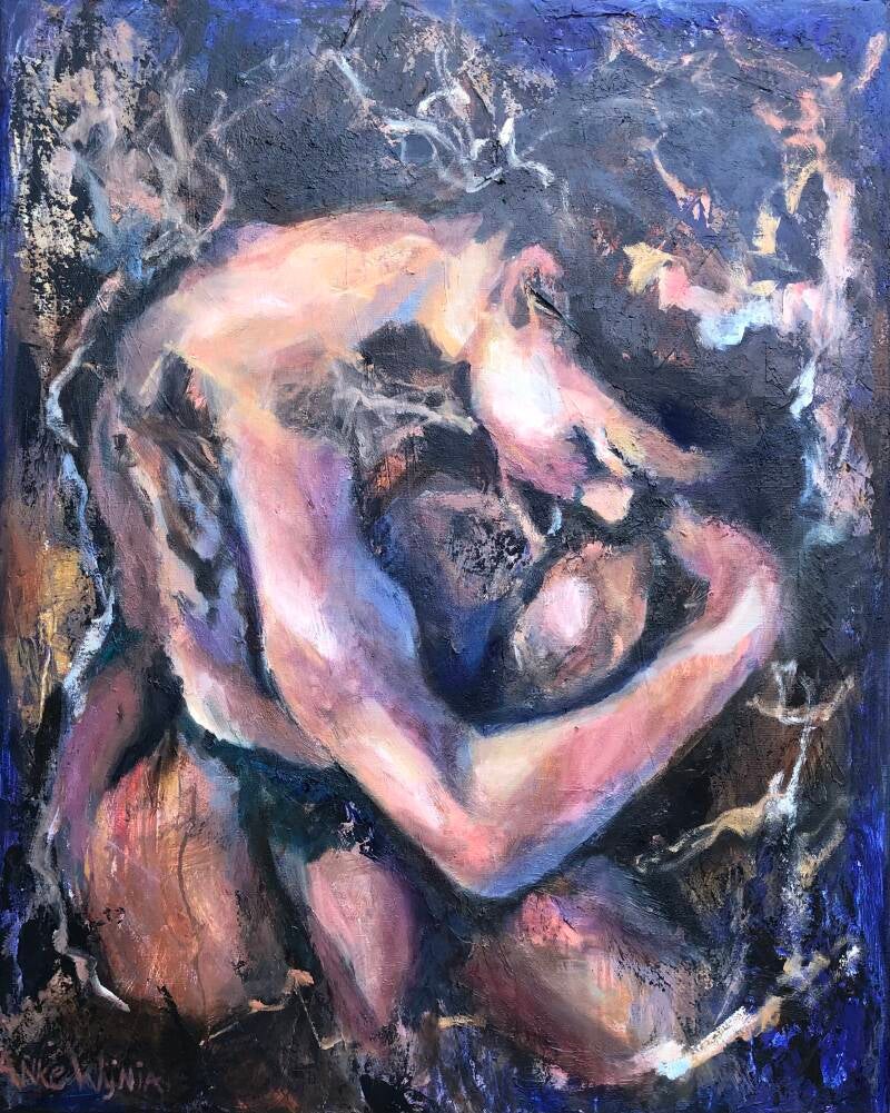 Vurig verlangen, olieverf op linnen doek, afm. 80 x 100 incl. baklijst blank VERKOCHT