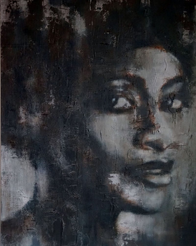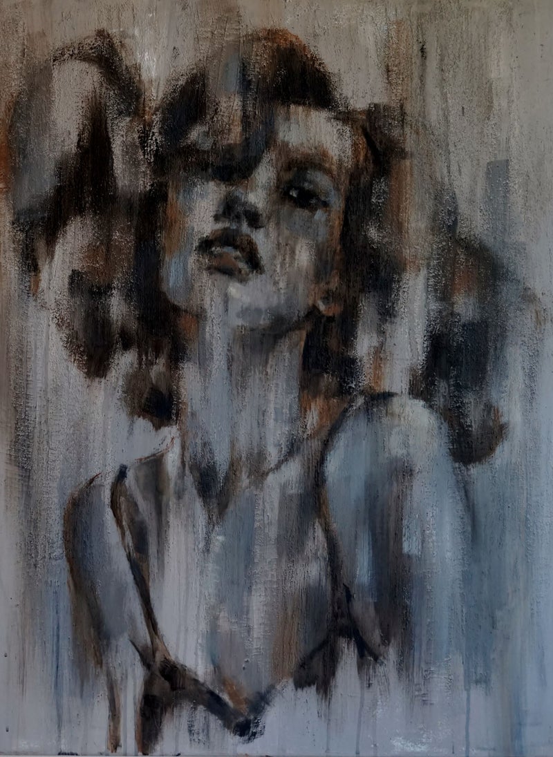 Tamara, houtskool, acryl & olieverf op linnen, afm. 80 x 120