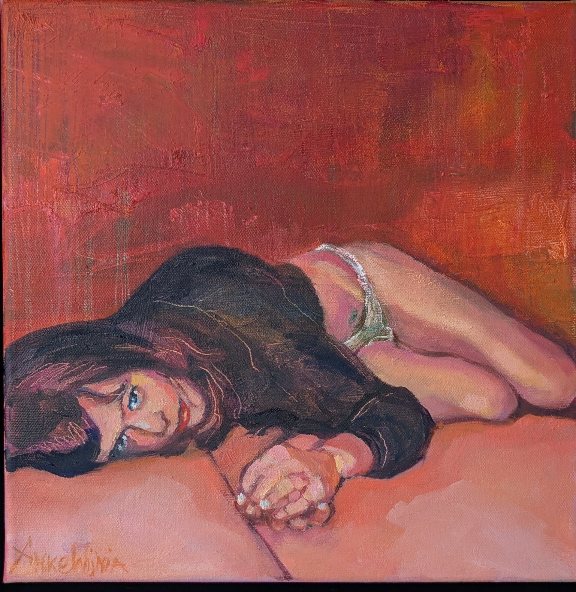 Verlangen Acryl en olieverf op linnen 30x30 incl. baklijst zwart