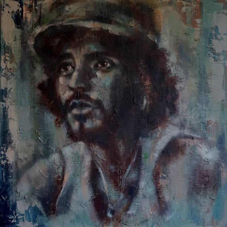 Bruce Springsteen acryl & olieverf op doek afm. 90 x 90