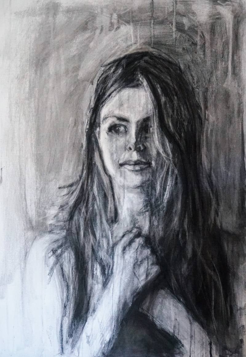 Tamara, houtskool, acryl & olieverf op linnen, afm. 80 x 120