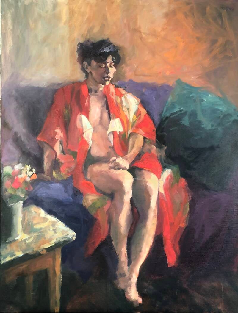 Lounging Julia, houtskool, acryl & olieverf op linnen, afm. 80 x 120