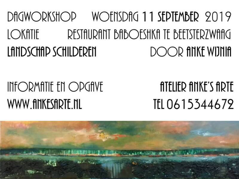 Woensdag 1 1 september 2019 kunt u een dagworkshop (wad)LANDSCHAP bij restaurant Baboeskha te Beetserzwaag bijwonen.