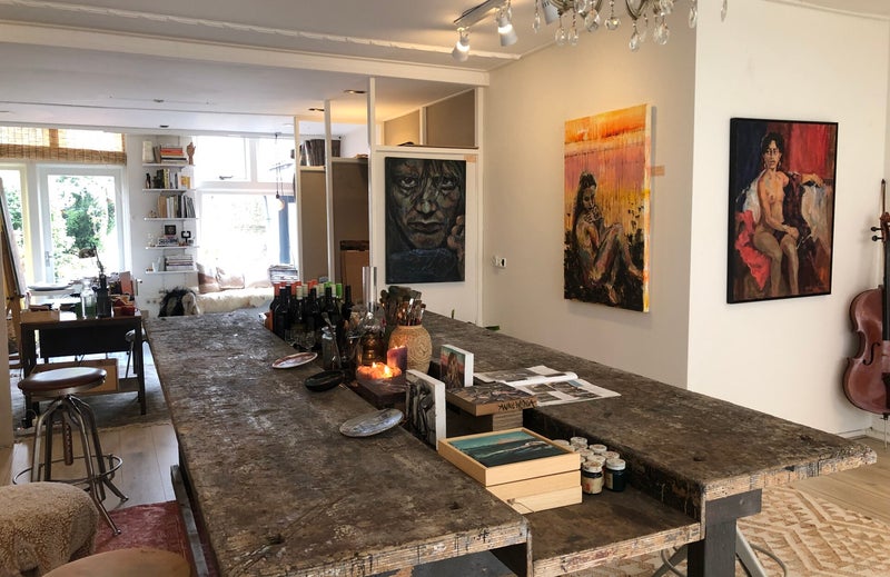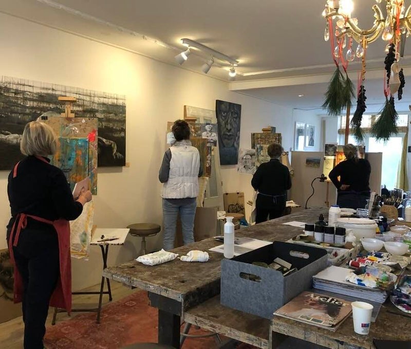 Deze workshop wordt door mij gegeven in mijn atelier aan de Dijkstraat 50 in Franeker. Je zult geïnspireerd raken door deze creatieve omgeving waar ook veel van mijn schilderijen te zien zijn.